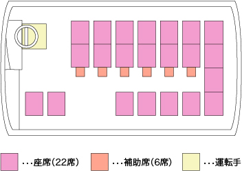 座席は小型4列シート、マイクロ3列シートで設定されております